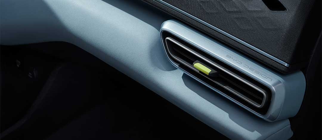 Ventilasi AC BYD Atto 1 mengusung gaya cyberpunk yang bold, memadukan garis tegas dengan aksen warna modern yang mencuri perhatian. Sentuhan futuristik ini menciptakan atmosfer kabin yang lebih hidup dan dinamis, sekaligus menegaskan karakter inovatif dan berjiwa muda khas BYD Atto 1.